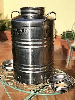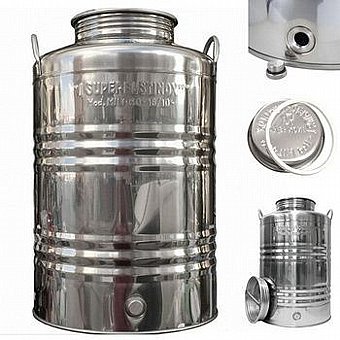 מיכל נירוסטה איכותי בנפח 50 ליטר, דגם גבוה לניצול יעיל של נפח וחיסכון במקום. כולל ברז ניקוז תחתון ועומד בדרישות התקן הישראלי. מתאים במיוחד לאחסון, שינוע ומזיגה של שמן זית, מים ונוזלים שונים, לשימוש ביתי ומקצועי כאחד.